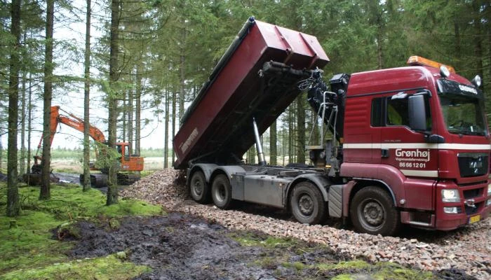 Grønhøj Vognmandsforretning leverer sand og grus overalt. Vi leverer hurtigt og effektivt, med tip eller kran/grab. Uanset om det er en lille opgave eller et større projekt, står vi klar til at levere det du ønsker.